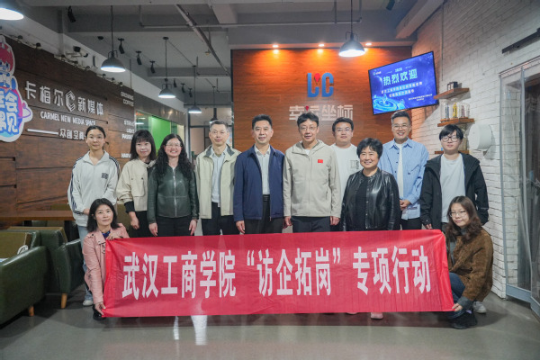 新闻中心讯(特约记者 肖隽)为深入贯彻落实“访企拓岗促就业”专项行动要求,精准对接企业用人需求,拓宽学生高质量就业渠道,4月21日,武汉工商学院党委书记、政府督导专员詹河焰带队,携文法学院党总支书记陈敏、艺术设计学院党总支书记罗筱芳、招生与就业工作部就业科科长蒋晓阳及师生代表等一行10余人,赴武汉市幸运坐标信息技术有限公司开展“访企拓岗”专项交流。