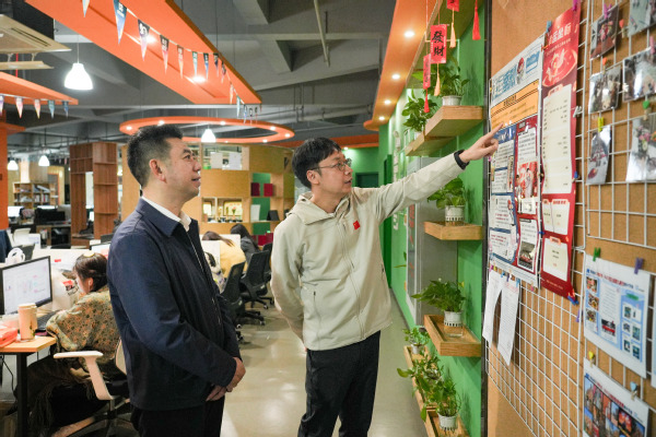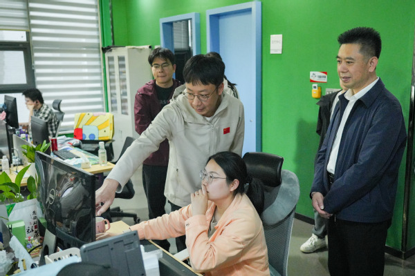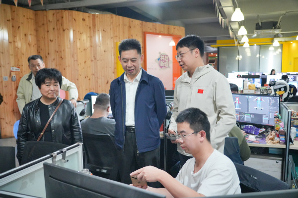 詹河焰一行先后参观了公司项目办公区与直播场景区,详细了解公司的运营模式、业务布局、发展现状以及其在商务市场拓展、文创产品研发、荣誉项目建设、公益事业践行及交互服务升级等方面取得亮点成果,直观感受到公司的经营活力与发展前景。